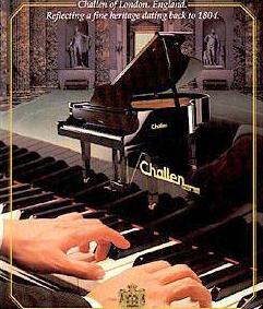 Makers of Fine Pianos Challen has been a name well-associated with the finest crafted pianos since 1804. Pianos that have graced royal households, concert halls, music conservatoriums, hotel and broadcasting studios for decades. Challen. A name closely associated with the British Broadcasting Corporation for over 30 years. Where excellent tonal quality, reliability and consistency in performance have made it the British piano of the British Broadcasting Corporation; and won it the much coveted "Royal Appointment Award" for product excellent. Within lies the secret of its success, extra heavy vacuum-processed grey cast iron with steel additive to permit high string tensions to be used.